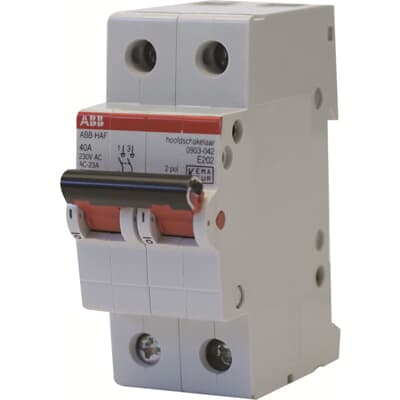 Abb Hafonorm lastscheider, apparaatbouwvorm inbouwapparaat vaste inb., uitvoering als hoofdschakelaar, vergrendelbaar, nom. continustroom Iu 63A, 4 polen, beschermingsgraad frontzijde (IP) IP20, bedieningselement zwart, geschikt voor verdelerinbouw, bedrijfsspanning (meetspanning) 230 – 400V