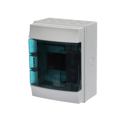 Omschrijving Verdeelkast opbouw, 4mod, transp.deur ,IP65, RAL7035, Mistral65
