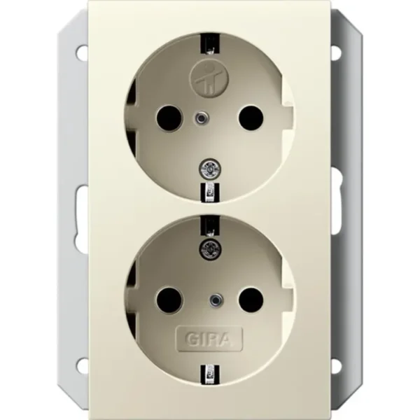 Gira wandcontactdoos randaarde kindveilig 2-voudig voor enkele inbouwdoos Systeem 55 creme glans (273101)
