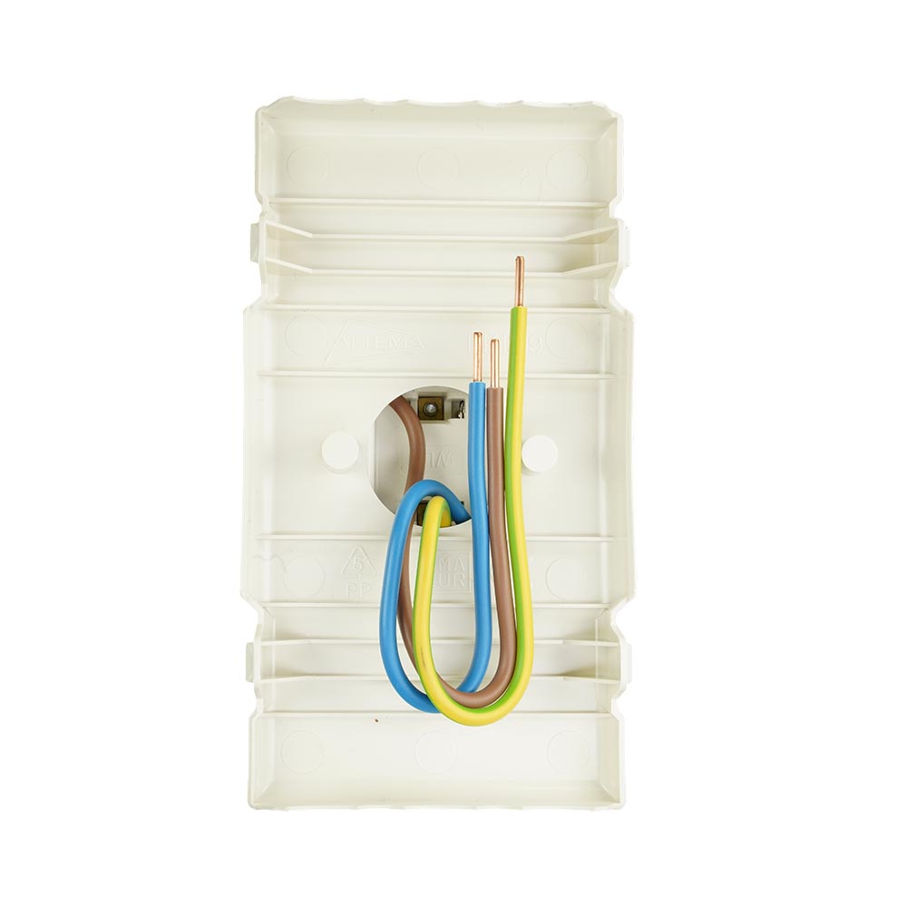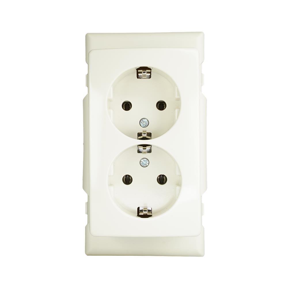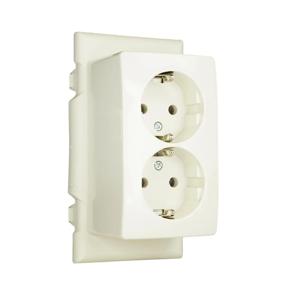 De witte kunststof behuizing heeft beschermingsgraad IP20 en is geschikt voor droge binnenruimtes. Door het kliksysteem monteer je het deksel snel en stevig op de onderbak zonder extra gereedschap. De twee stopcontacten zijn geschikt voor standaard 16A installaties en voorzien van randaarde voor extra veiligheid.