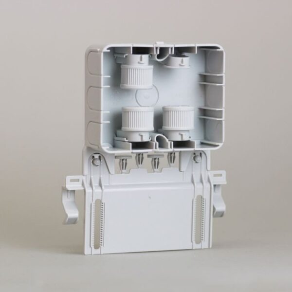 - Stevige montage van de doos in de wand, dankzij de metalen schroefplaatjes met drievoudige spoed.