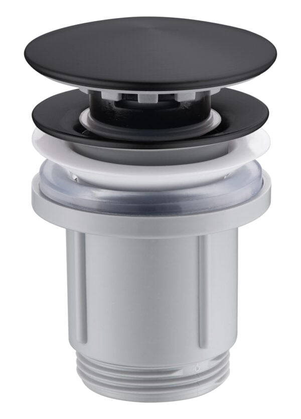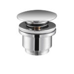 Klik-klak-ventiel van verchroomd messing, geschikt voor alle wastafels en bidets met of zonder overloop, open-/sluitsysteem gegarandeerd voor 20.000 keer gebruik, 1 1/4″ onderdraad, gemaakt van verchroomd messing. Snelle en eenvoudige installatie.