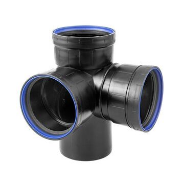 Dyka PP+ Dubbel T-stuk haaks 3 x mof/1 x spie 90° zwart – PP+ Dubbel T-stuk haaks 90mm 3 x mof 90° zwart