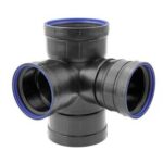 Dyka PP+ Dubbel T-stuk haaks 4 x mof 90° zwart – PP+ Dubbel T-stuk haaks 90mm 4 x mof 90° zwart