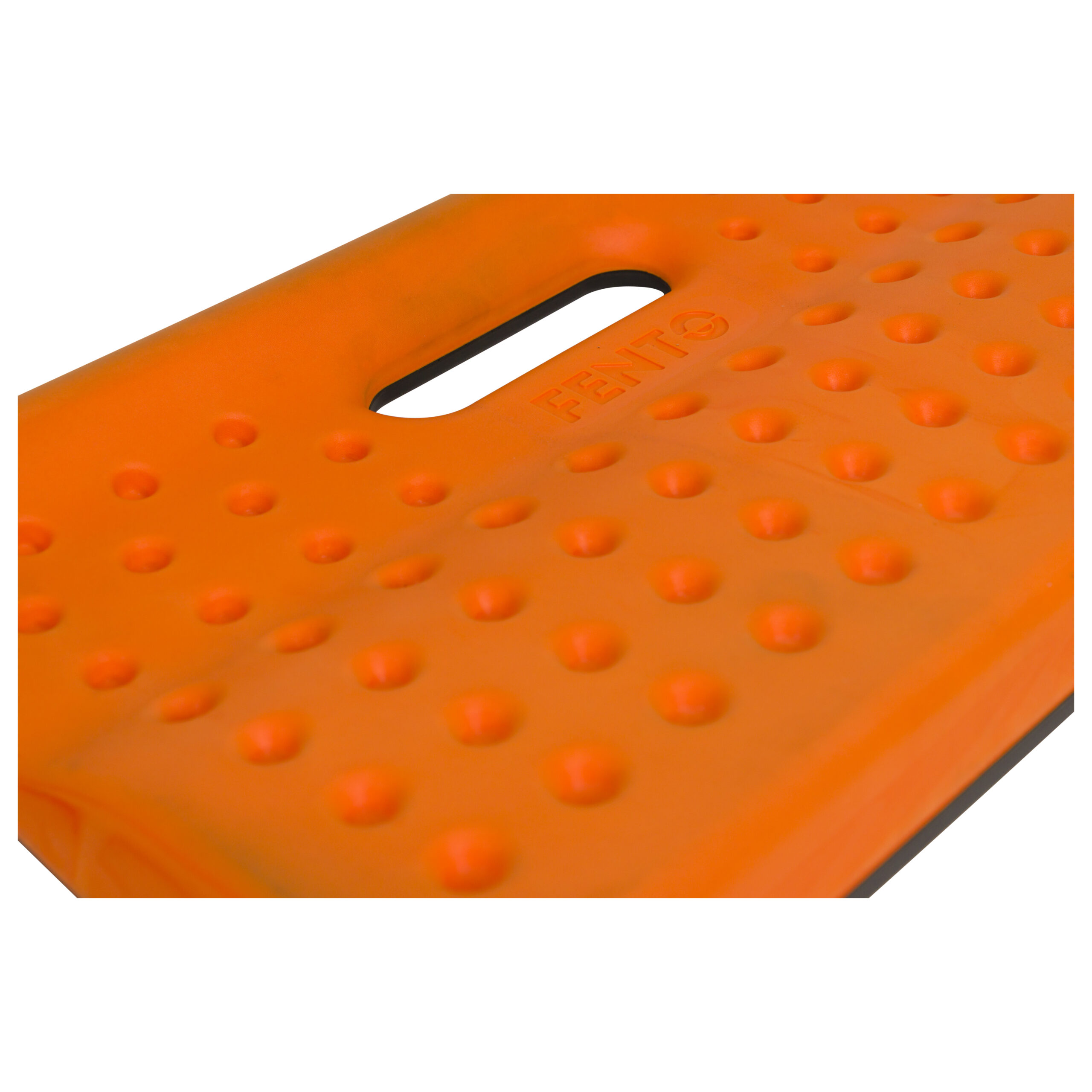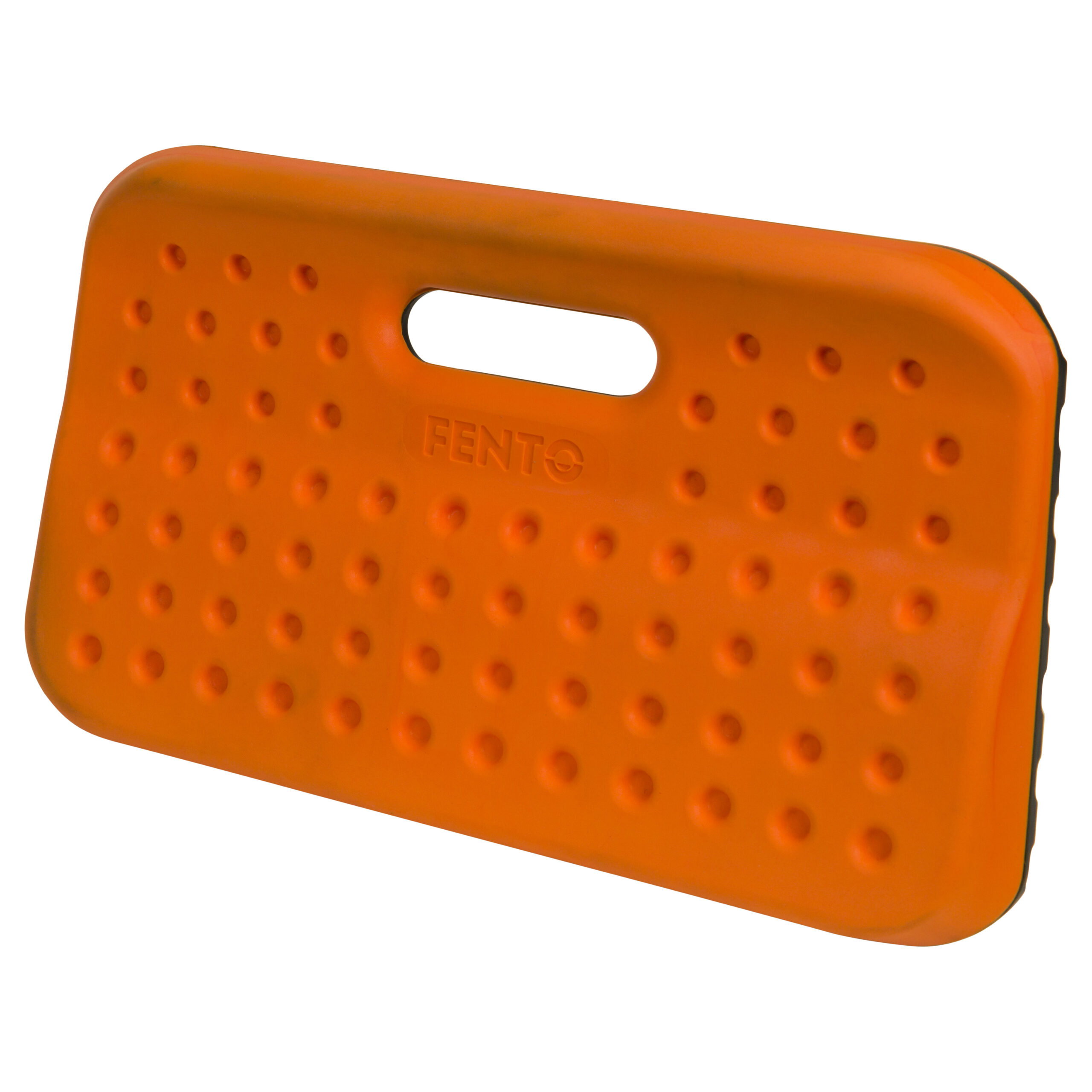 De Fento kniebeschermer is oranje/zwart van kleur en gemakkelijk te gebruiken. U kunt hierdoor langer op uw knieën werken zonder dat u lasten ervaart van een harde ondergrond.