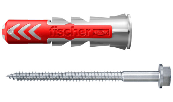 De fischer DuoPower is een slimme 2-componenten plug met drie verschillende werkingsprincipes. De slimme universele plug is geschikt voor bevestigingen in alle bouwmaterialen. Hierdoor ontstaan velerlei soorten toepassingen met slechts één plug. De fischer DuoPower past zich zelfstandig aan het bouwmateriaal aan verdeelt door de drie werkingsprincipes spreiden, tikken en knopen de zwaarste lasten over het bouwmateriaal. De uitermate goede reactie bij het indraaien van de schroef zorgt voor extra veiligheid. De fischer DuoPower 6 x 50, 8 x 65 en 10 x 80 zijn door de grotere verankeringsdiepte bijzonder geschikt voor bevestigingen in geperforeerd bouwmateriaal, cellenbeton en voor het overbruggen van pleisterlagen.