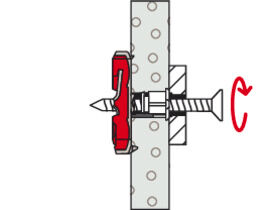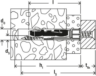 - In massieve bouwmaterialen zoals bijv. beton of hout werkt de plug als een spreidplug. Het gebruik van spaanplaatschroeven wordt in dit geval aangeraden.