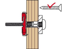 - Het glasvezelversterkte kunststof en de metalen insert (fischer DuoTec 12) zorgen voor de opname van hoge trek- en dwarskrachten in alle soorten plaatmateriaal.
