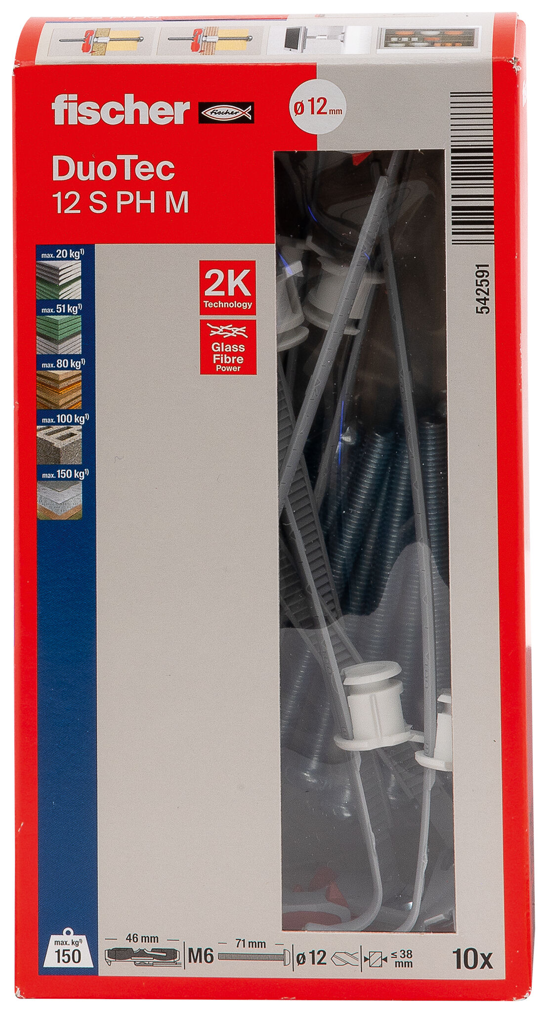 fischer Hollewandplug DuoTec 12 S PH met metrische bolkopschroef (10 stuks)