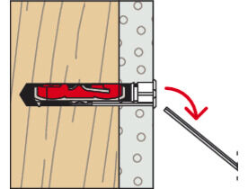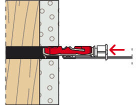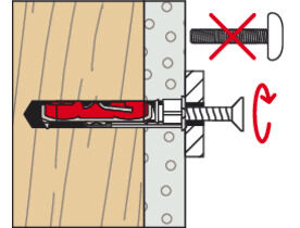 - In massieve bouwmaterialen zoals bijv. beton of hout werkt de plug als een spreidplug. Het gebruik van spaanplaatschroeven wordt in dit geval aangeraden.