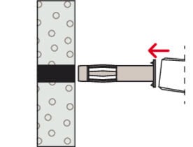 - De HM kan gemonteerd worden met een montagetang. Bij het gebruik van een accuschroevendraaier of schroevendraaier, dient u de voorgemonteerde schroef eerst te demonteren. Bij het inschroeven en het spreiden van de armen, dient het aanbouwdeel of plaatdikte van maximaal 6 mm geplaatst te worden gebruikt om meedraaien van de hollewandplug in het boorgat te voorkomen.