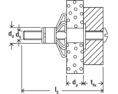 - De weerhaken onder de kraag grijpen in het plaatmateriaal waardoor het meedraaien in het boorgat wordt voorkomen en een veilige montage gegarandeerd is.