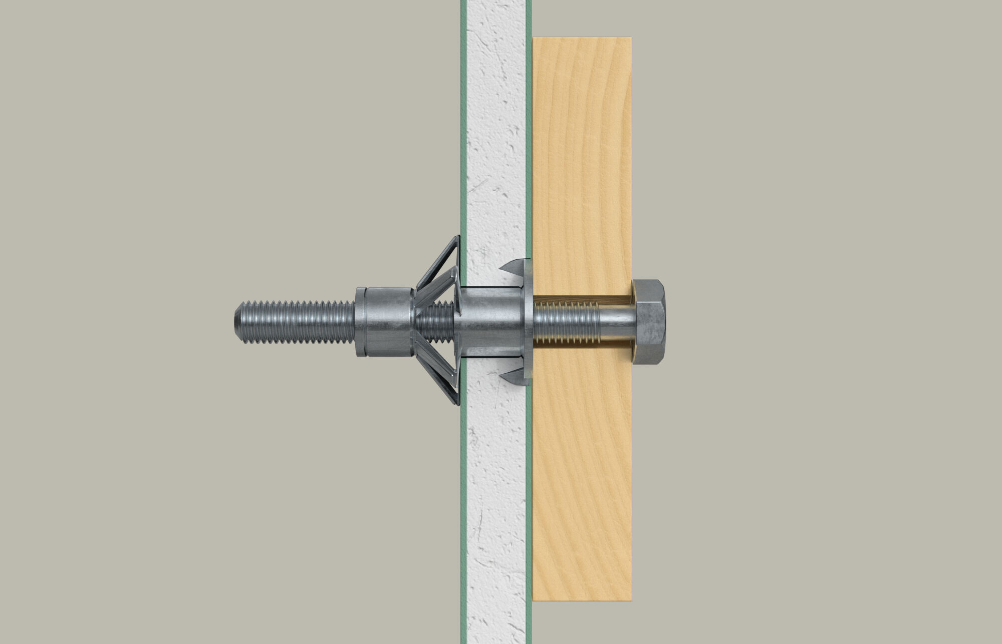 De fischer Metalen hollewandplug HM-S is een veelzijdige hollewandplug met metrische bout voor alle plaatmateriaal. De plug wordt met de fischer Hollewandplug tang HM-Z 1 in de voorsteekmontage geplaatst. Met de tang wordt de plug in de holle ruimte achter het plaatmateriaal getrokken. De armen spreiden zich daarbij uit achter het plaatmateriaal en verdelen de krachten over een groot oppervlak. Als alternatief is de montage ook met behulp van een schroevendraaier of een accu-schroefboormachine mogelijk. De fischer Metalen hollewandplug HM-S is geschikt voor de bevestiging van verlichting, handdoekenrekken en gordijnrails in de interieurbouw.