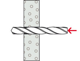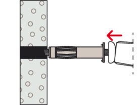 - De HM kan gemonteerd worden met een montagetang. Bij het gebruik van een accuschroevendraaier of schroevendraaier, dient u de voorgemonteerde schroef eerst te demonteren. Bij het inschroeven en het spreiden van de armen, dient het aanbouwdeel of plaatdikte van maximaal 6 mm geplaatst te worden gebruikt om meedraaien van de hollewandplug in het boorgat te voorkomen.