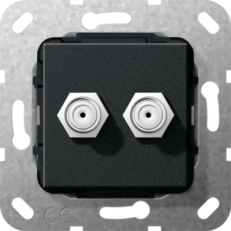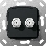 Gira multi data-com. schakelmat., thermoplast, zwart, aansluitwijze bus, uitvoering oppervlakte mat, 2 Sat F aansluitingen, halogeenvrij