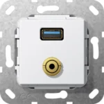 Gira Communicatie communicatie comp. (schakelmat.), thermoplast, zuiver wit, RAL-nummer 9010, uitvoering oppervlakte glanzend, halogeenvrij, aansluitwijze kabel, 1 USB aansluitingen, 1 jack 3,5 mm aansluitingen