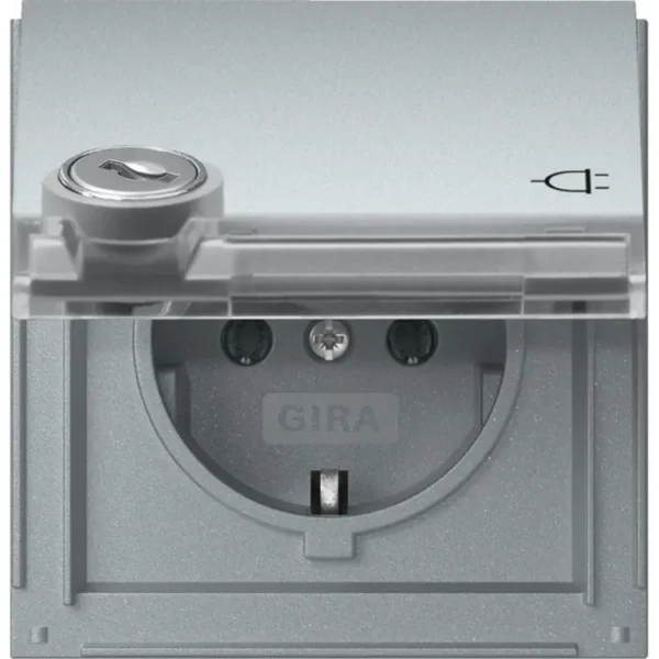 Gira wandcontactdoos randaarde met klapdeksel tekstkader en slot gelijksluitend TX44 aluminium (456965)