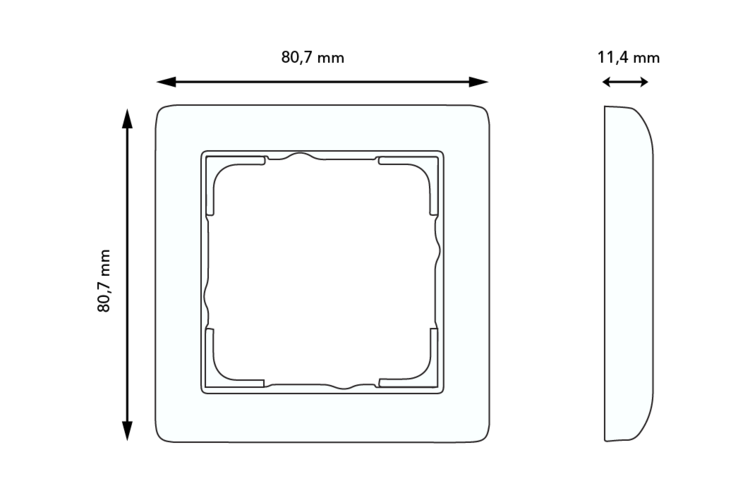 Enkelvoudig afdekraam, geschikt voor verticale en horizontale montage. Afmetingen (buitenmaat bxhxd): 80,7 x 80,7 x 11,4 mm. Serie: Standaard 55, kleur: wit glans.