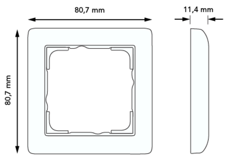 Enkelvoudig afdekraam, geschikt voor verticale en horizontale montage. Afmetingen (buitenmaat bxhxd): 80,7 x 80,7 x 11,4 mm. Serie: Standaard 55, kleur: wit mat.