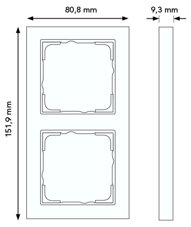 E2 afdekraam, kunststof, aluminium, 2 eenheden, montagerichting verticaal, geschikt voor inbouwinstallatie