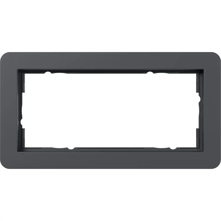 Tweevoudig afdekraam zonder middenstijl, speciale uitvoering. Niet geschikt om twee losse componenten in te plaatsen, gebruik daarvoor een regulier 2-voudig afdekraam met middenstijl. Serie: E1, kleur: antraciet mat.