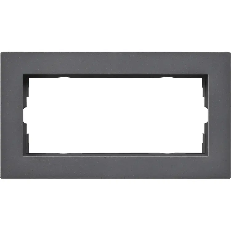Tweevoudig afdekraam zonder middenstijl, speciale uitvoering. Niet geschikt om twee losse componenten in te plaatsen, gebruik daarvoor een regulier 2-voudig afdekraam met middenstijl. Afm.: 87,8 x 158,9 x 3,4 mm. Serie: E2 vlak, kleur: antraciet mat.