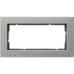 Tweevoudig afdekraam zonder middenstijl, speciale uitvoering. Niet geschikt om twee losse componenten in te plaatsen, gebruik daarvoor een regulier 2-voudig afdekraam met middenstijl. Afm.: 87,8 x 158,9 x 3,4 mm. Serie: E2 vlak, kleur: edelstaal.