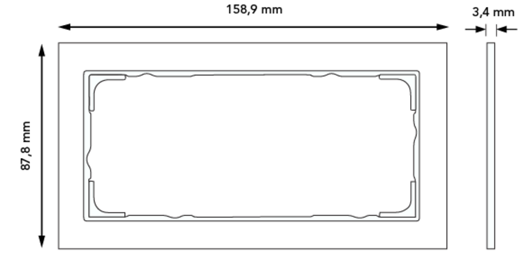 Tweevoudig afdekraam zonder middenstijl, speciale uitvoering. Niet geschikt om twee losse componenten in te plaatsen, gebruik daarvoor een regulier 2-voudig afdekraam met middenstijl. Afm.: 87,8 x 158,9 x 3,4 mm. Serie: E2 vlak, kleur: edelstaal.