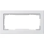Tweevoudig afdekraam zonder middenstijl, speciale uitvoering. Niet geschikt om twee losse componenten in te plaatsen, gebruik daarvoor een regulier 2-voudig afdekraam met middenstijl. Afmetingen: 80,8 x 151,9 x 9,3 mm. Serie: E2, kleur: wit glans.