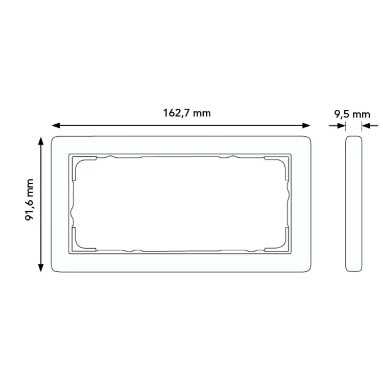 Tweevoudig afdekraam zonder middenstijl, speciale uitvoering. Niet geschikt om twee losse componenten in te plaatsen, gebruik daarvoor een regulier 2-voudig afdekraam met middenstijl. Afm.: 91,6 x 162,7 x 9,5 mm. Serie: E3, kleur: donkergrijs/antraciet.