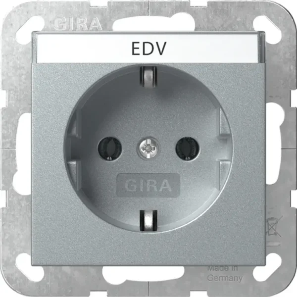 Gira wandcontactdoos randaarde met tekstkader Systeem 55 aluminium mat (445726)