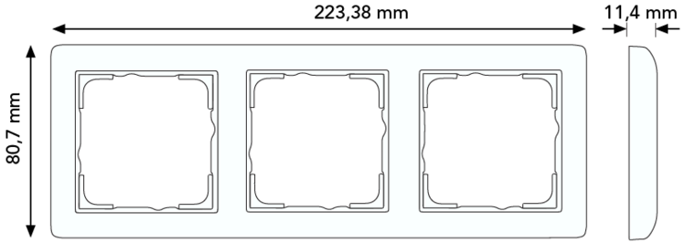 Drievoudig afdekraam, geschikt voor verticale en horizontale montage. Afmetingen (buitenmaat bxhxd): 80,7 x 223,3 x 11,4 mm. Serie: Standaard 55, kleur: wit mat.