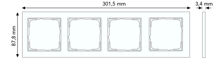 Extra plat E2 afdekraam, 4-voudig. Vereist speciale vierkante inbouwdozen, NIET toepasbaar in combinatie met reguliere ronde inbouwdozen.