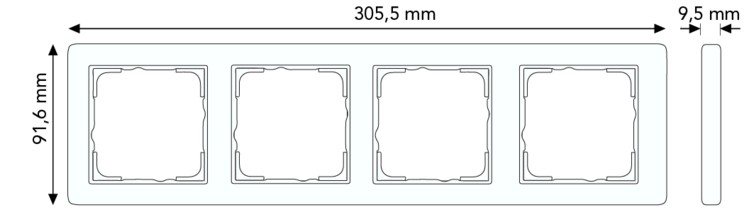 E3 afdekraam, kunststof, grijs, (bxhxd) 305,5×91,6×9,5mm, 4 eenheden, montagerichting horizontaal en verticaal, geschikt voor inbouwinstallatie.