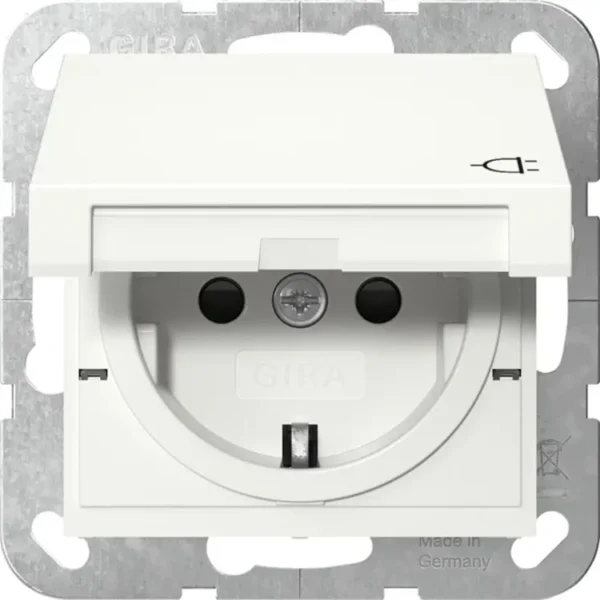 Gira wandcontactdoos randaarde verhoogde aanraakbeveiliging met klapdeksel Systeem 55 wit mat (441427)