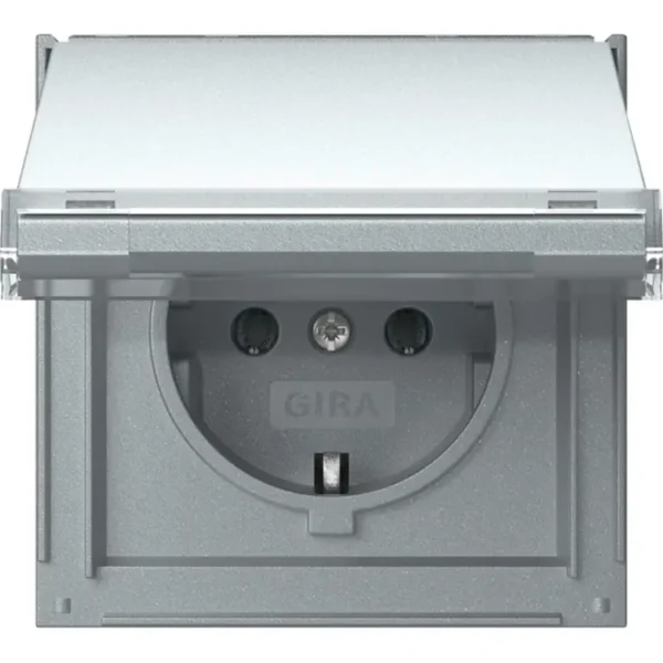 Gira wandcontactdoos randaarde met klapdeksel en tekstkader TX44 aluminium (441065)