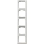 Vijfoudig afdekraam met tekstkader, alleen geschikt voor verticale montage. Afmetingen (buitenmaat bxhxd): 80,7 x 365,9 x 11,4 mm. Serie: Standaard 55, kleur: wit glans.