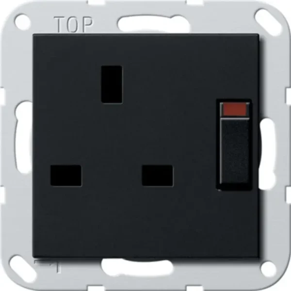 Gira system 55 wip met opdruk verwarmingsnoodschakelaar en controlevenster – zwart mat (3678005)
