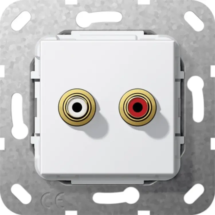 Gira multi data-com. schakelmat., thermoplast, zuiver wit, aansluitwijze soldeeraansluiting, uitvoering oppervlakte glanzend, 1 cinch-audio aansluitingen, halogeenvrij
