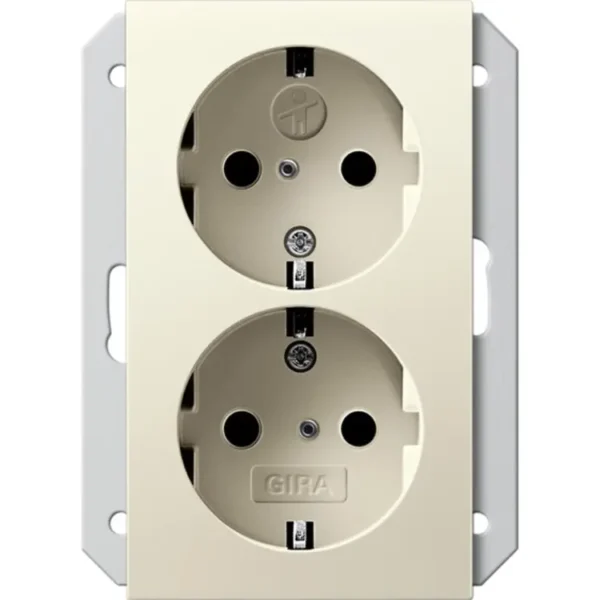 Gira dubbel stopcontact met randaarde en shutter voor 1,5-voudige inbouwdoos – Systeem 55 crème wit (273501)