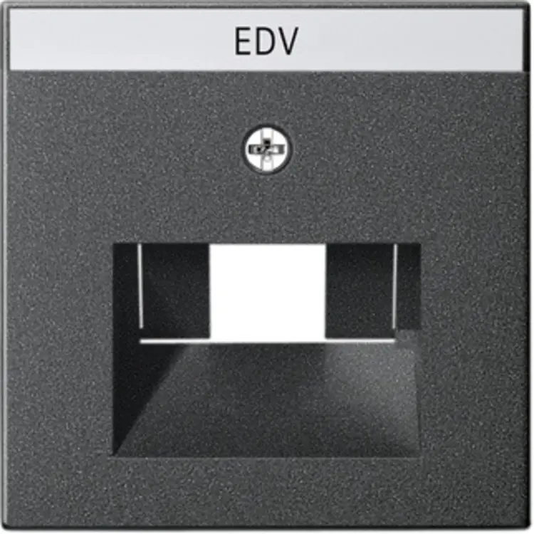 Afdekking met tekstkader (51,2 x 7 mm) voor RJ45 wandcontactdoos met schuine ingang. Kan doormiddel van uitbreek stukjes voor zowel enkele als dubbele RJ45 contactdozen toegepast worden. Serie: Systeem 55, kleur: antraciet mat.