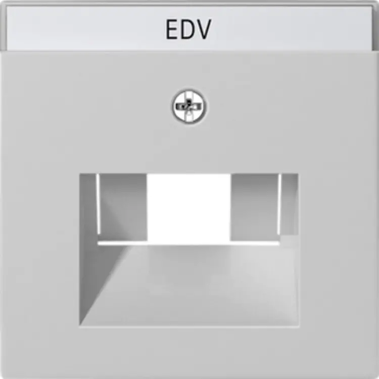 Afdekking met tekstkader (51,2 x 7 mm) voor RJ45 wandcontactdoos met schuine ingang. Kan doormiddel van uitbreek stukjes voor zowel enkele als dubbele RJ45 contactdozen toegepast worden. Serie: Systeem 55, kleur: grijs mat.