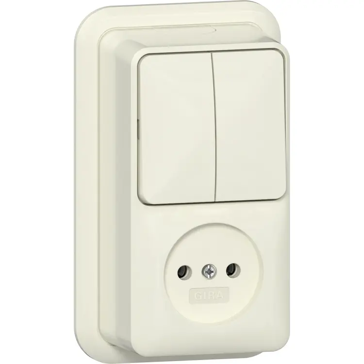 Gira combinatie serieschakelaar en wandcontactdoos zonder randaarde opbouw creme (447510)