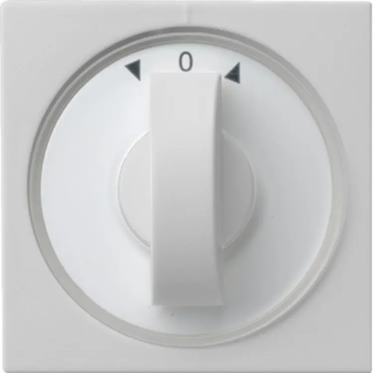Draaiknop voor jaloezie- en tijdschakelaar. Symboolschijven voor tijd (15-120 min, 30-60 min) en jaloezie (pijlsymbolen) zijn inbegrepen en verwisselbaar. Hierdoor kan deze afdekking universeel worden toegepast. Systeem 55, grijs mat.