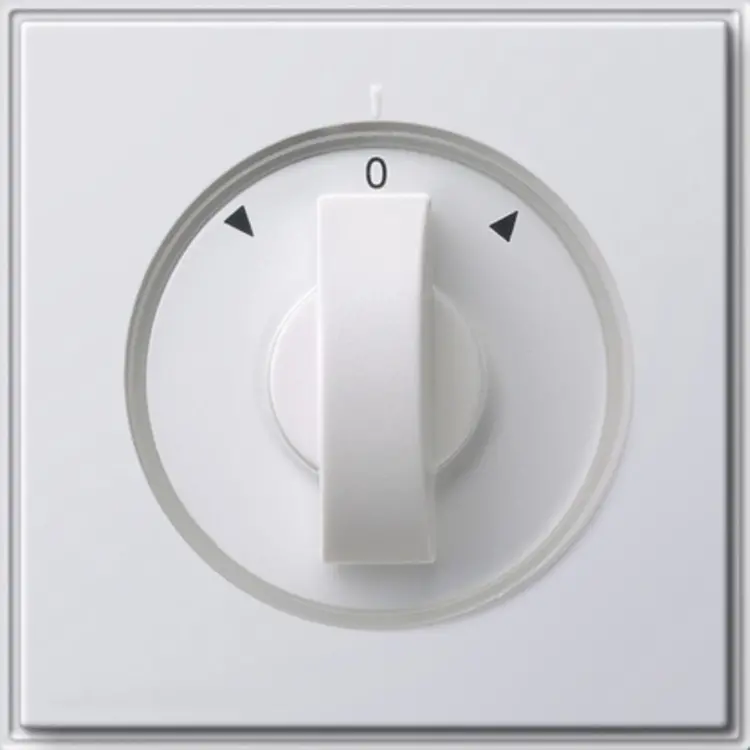 Draaiknop voor jaloezie- en tijdschakelaar. Symboolschijven voor tijd (15-120 min, 30-60 min) en jaloezie (pijlsymbolen) zijn inbegrepen en verwisselbaar. Hierdoor kan deze afdekking universeel worden toegepast. Serie: TX_44, kleur: wit.