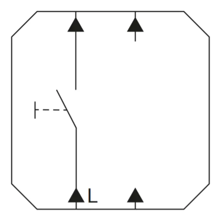 Standaard 1-polig drukcontact (pulsdrukker) maakcontact, met apart meldcontact. De schakelaar kan worden gemonteerd in de inbouwdoos met schroefbevestiging (niet voorzien van bevestigingsklauwen/spreidklemmen). De bedrading is aan te sluiten met steekklemmen. Afdekken met schakelwip en afdekraam. Inbouwdiepte 23 mm.