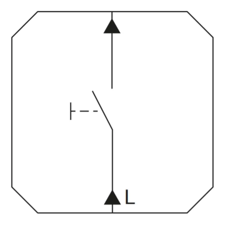 Standaard 1-polige drukcontact (pulsdrukker) met maakcontact. De schakelaar kan worden gemonteerd in de inbouwdoos met schroefbevestiging en/of bevestigingsklauwen (spreidklemmen). De bedrading is aan te sluiten met steekklemmen. Afdekken met schakelwip en afdekraam. Inbouwdiepte 32 mm.