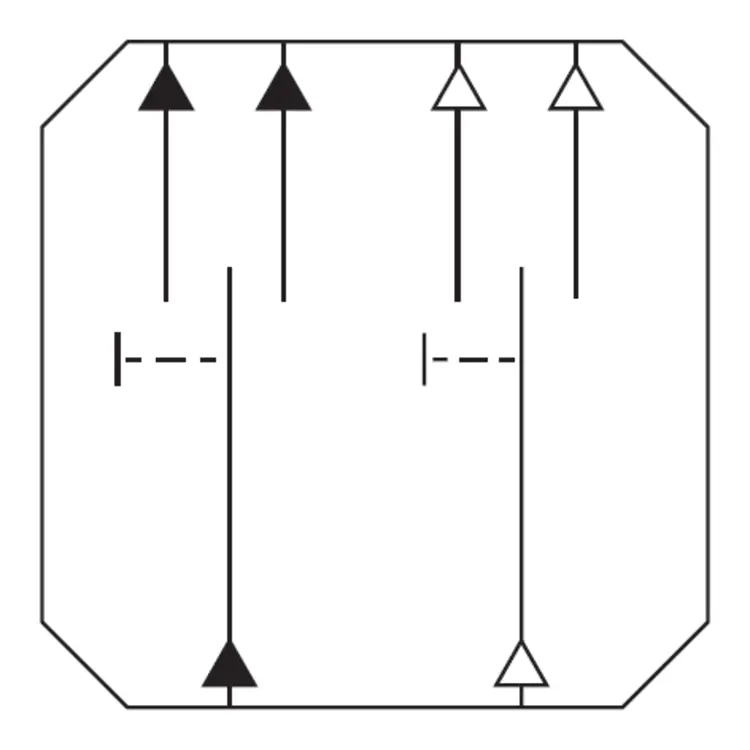 Pulsdrukker 4-voudig maakcontact met twee gescheiden ingangen en twee gescheiden uitgangen per ingang/kanaal, inclusief neutrale nulstand. Uitermate geschikt voor de afzonderlijke bediening van bijvoorbeeld 2 jaloezieën. De schakelaar kan worden gemonteerd in de inbouwdoos met schroefbevestiging en/of bevestigingsklauwen (spreidklemmen). De bedrading is aan te sluiten met steekklemmen. Inbouwdiepte 32 mm.