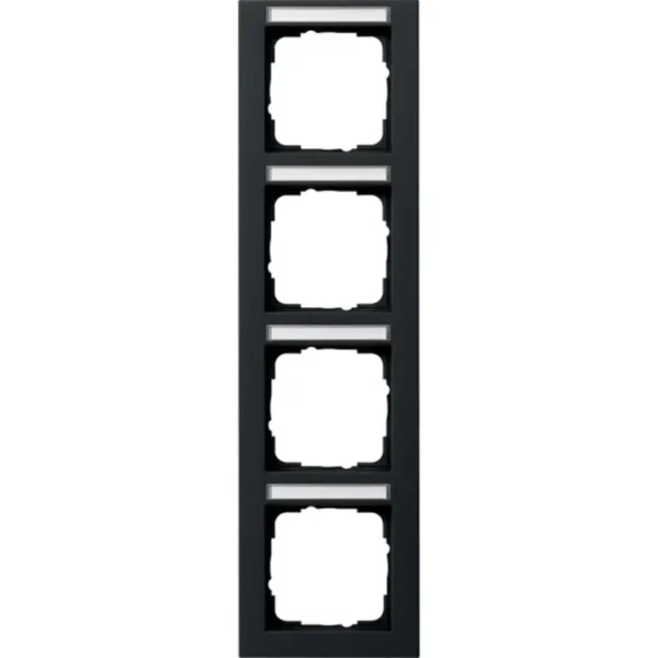 Gira afdekraam 4-voudig verticaal tekstkader E2 zwart mat (111409)