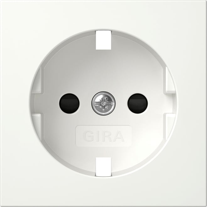 Gira losse centraalplaat met kinderbeveiliging (geleverd zonder stopcontact) – Systeem 55 zuiver wit mat (492127)